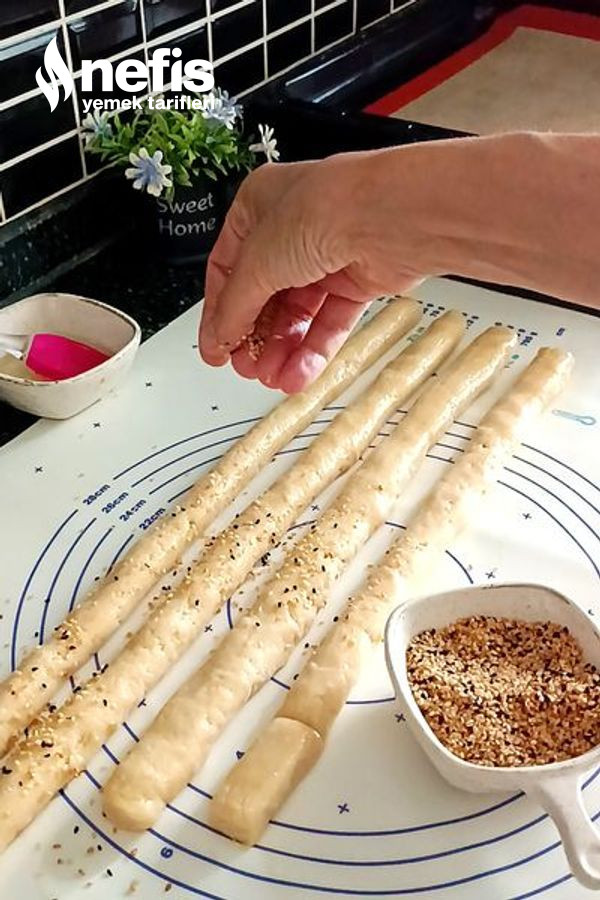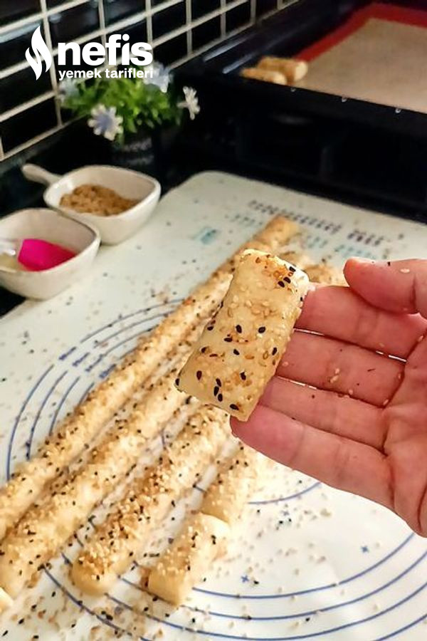 - 1 parmak uzunluğunda kesip tepsiye çizelim ve 180° fırında altı kızarana kadar pişirelim.