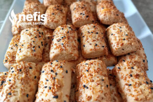 - 1 parmak uzunluğunda kesip tepsiye çizelim ve 180° fırında altı kızarana kadar pişirelim.