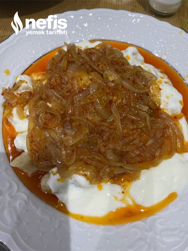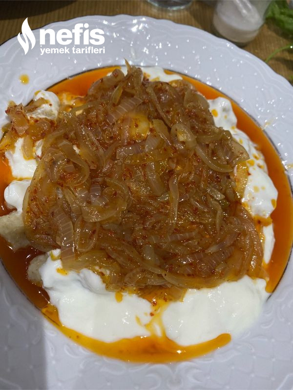 10. Köfteler piştikten sonra süzün ve yoğurtlu sosu tabağa ekle en son soğanlı sosu üzerine gezdirin.