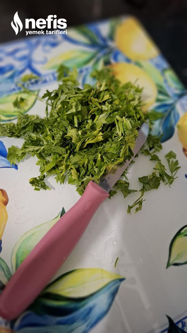 9. Bir tutam maydanozu yıkayıp ince ince doğruyoruz.