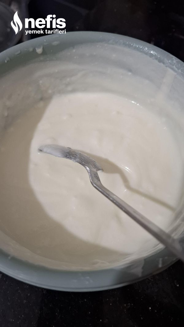 8. Makarnalar süzerken bir kaba 1 su bardağı yoğurt yarın çay kaşığı tuz ve 1 yemek kaşığı mayonez koyup çırpıyoruz.