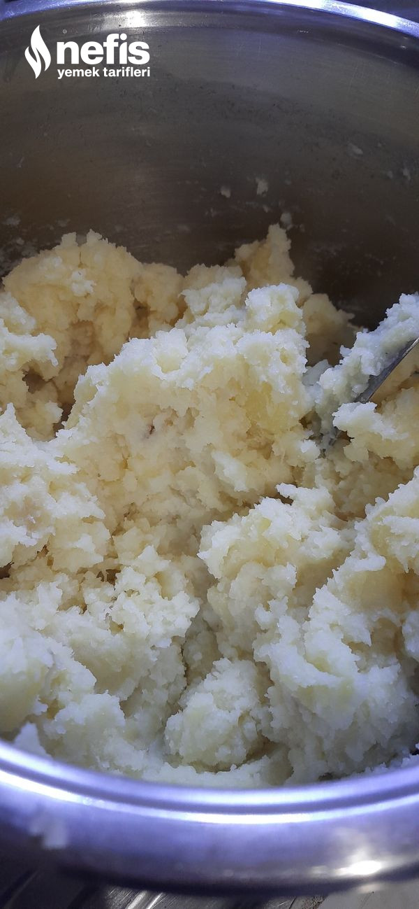 - Haşlanan patatesler ezilir, tereyağ eklenir. Uygunca yoğurduktan sonra ceviz büyüklüğünde modül alıp hal verilir içine iç konulacağı için oyulur.