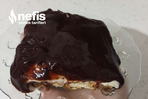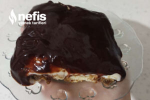 - Üzerine krema en üstüne de çikolata sosunu döküp soğuduktan sonra servis yapabilirsiniz. Şimdiden afiyet olsun ✨.