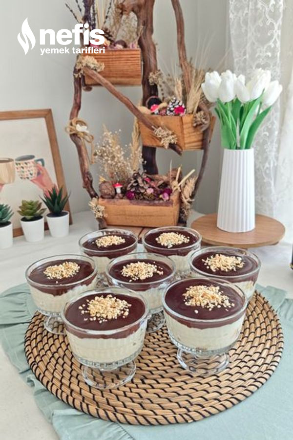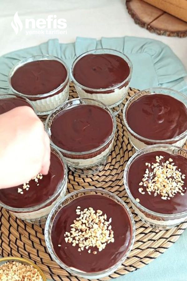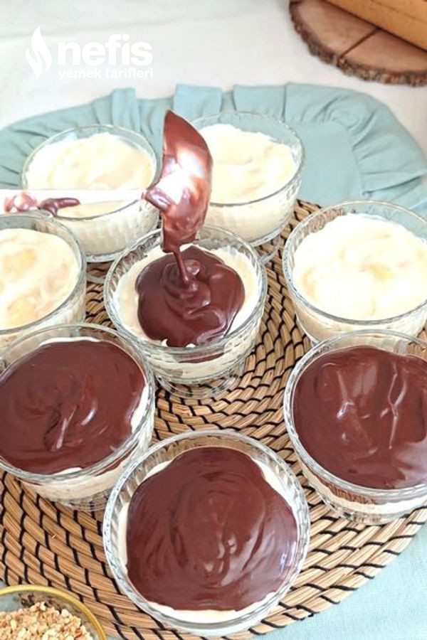 - Hazırladığınız çikolata sosunu muhallebilerin üzerine dökün.