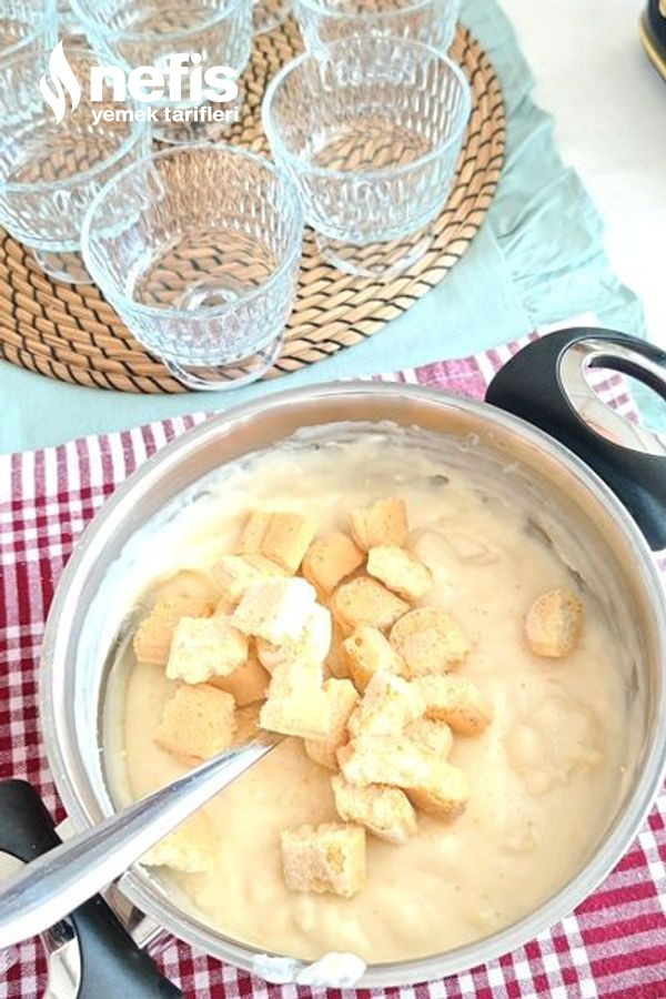 - Kedidillerini ufalayarak muhallebinin içine ekleyin ve karıştırın. Karışımı kaselere paylaştırın, üzerini düzeltin.