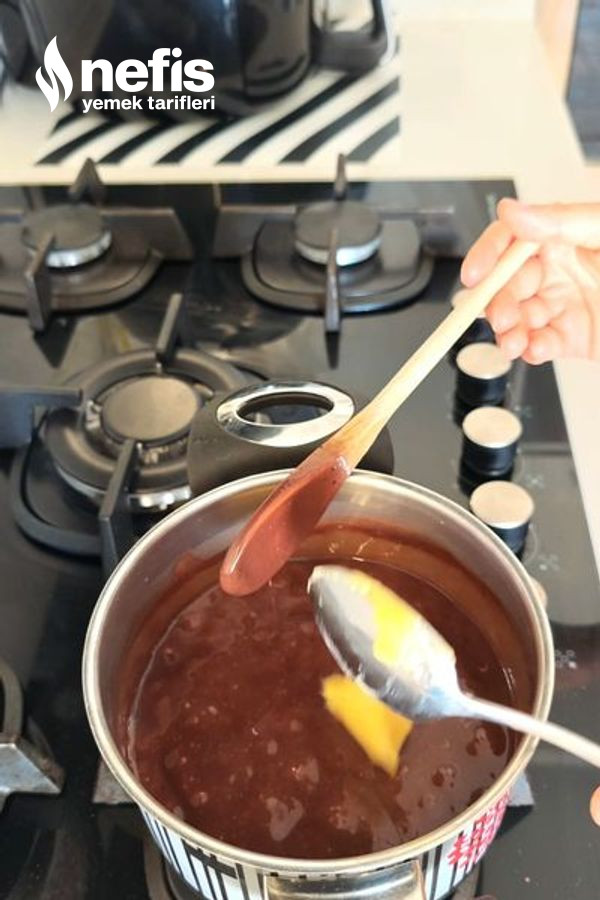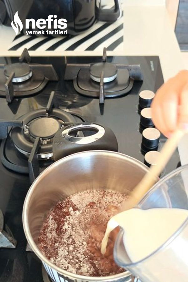 - Çikolata sosu için; süt, un, nişasta ve kakaoyu tencereye alın. Orta ateşte karıştırarak yoğunlaşana kadar pişirin. Ocaktan alınca tereyağı ve çikolatayı ekleyip eriyene kadar karıştırın.