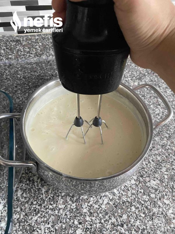 4. 5 dk kadar mikserle karıştıralım. Bu evrede muhallebinizin sakız üzere olmasını sağlayacaktır.