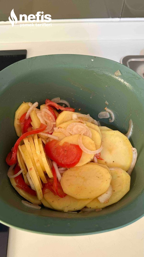 - Baharat karışımının bir kısmını ete ekleyip elimizle düzgünce ovup güzelce ete yedirelim. Geri kalan baharatları sebzelere ekleyip zeytinyağı da ekleyim güzelce karıştıralım.