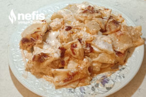 - Açtığımız yufkamızı fotoğraftaki üzere kesiyoruz ,kestiğimiz yaprak hengellerimizi kaynayan tuzlu suya atıyoruz ,yarım saat kaynatıyoruz hengellerimiz kaynayan suyun üzerine çıkınca yaprak hengellerimiz süzüyoruz.