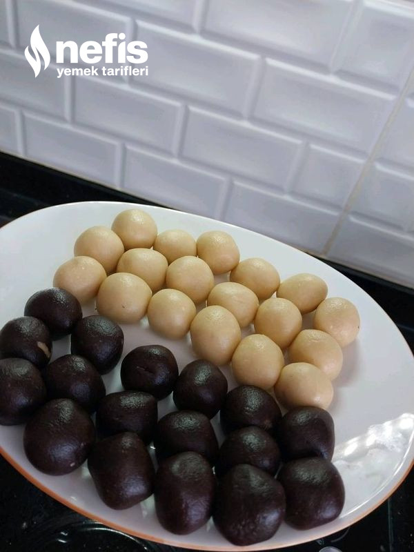 - Bilye kadar bir sade hamurdan bir kakaolu hamurdan alıp yuvarlayalım.