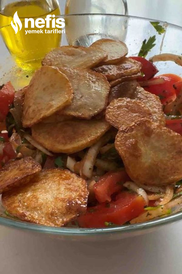 - Daha sonra bir tane patatesi soyup halka halka doğrayalım kızartıp salataya ekleyelim olağanüstü bir salata oluyor deneyecek olanlar afiyet olsun💐.