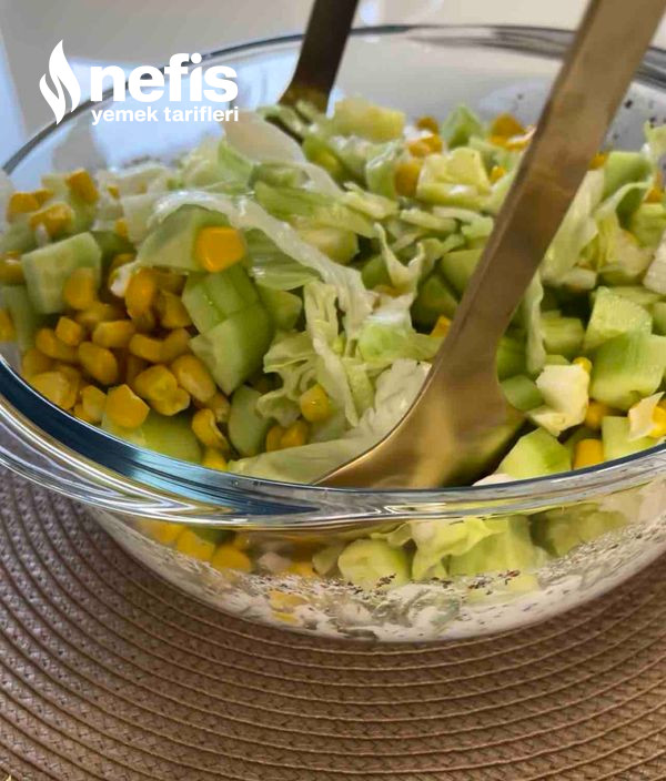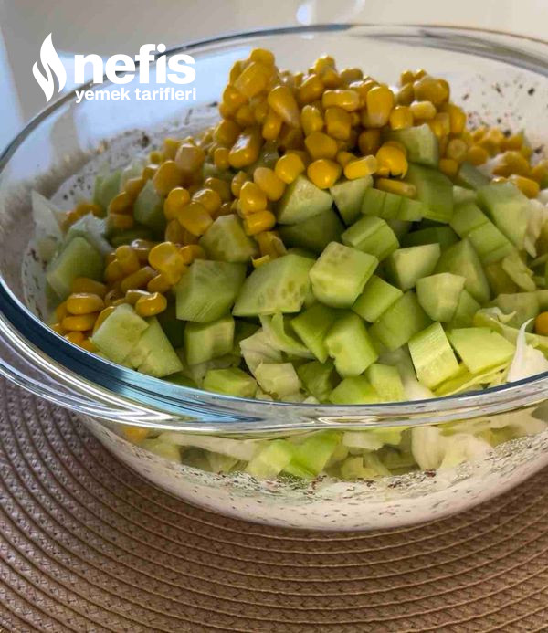 3. Doğradığınız gereçleri yoğurtlu sosa ekleyin son olarak haşlanmış mısırı da ekleyin bir hoş karıştırın.