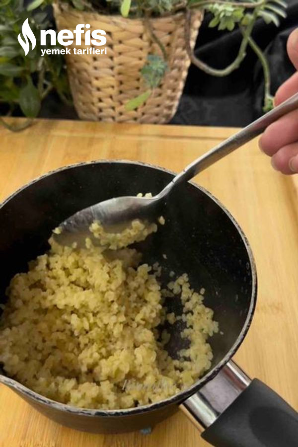 - Yarım çay bardağı kadar bulguru 1 çay bardağı kadar kaynamış suya atıp haşlayın.