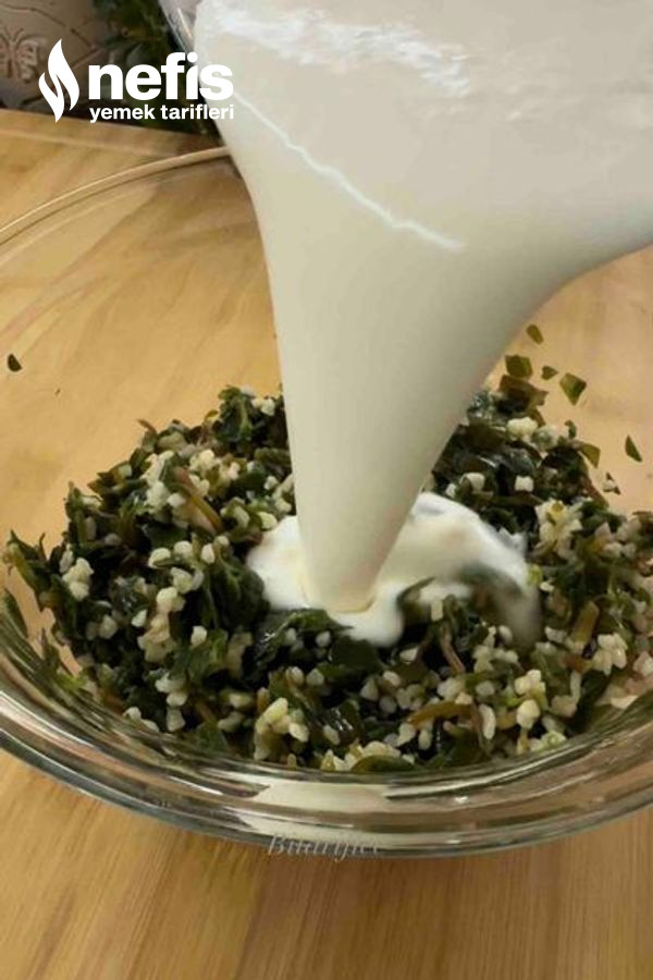 - Semizotu ve bulguru karıştırıp üzerine farklı bir kapta karıştırdığınız yoğurdu ek edin.
