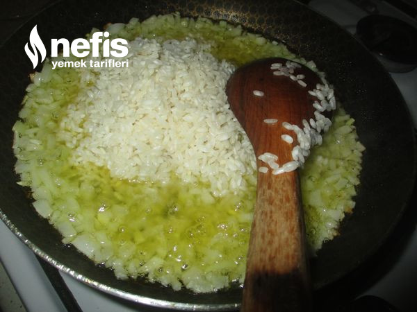 1. Pirinci ılık tuzlu suda beş dakika bekletelim, yıkayalım, süzelim ,tavaya yağı koyalım. Yemeklik doğranmış soğanı koyalım, tuzu serpelim. Kısık ateşte iki dk kavuralım. Pirinci ek edip iki dk kısık ateşte kavuralım. Tuz ,baharat serpelim.