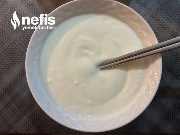 2. Sonrasında yoğurdumuzu bir kaseye alıp pürüzsüz ve biraz daha akışkan olana kadar çırpıyoruz.