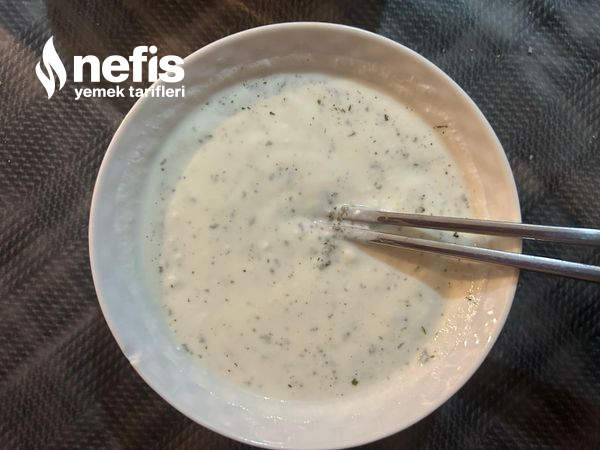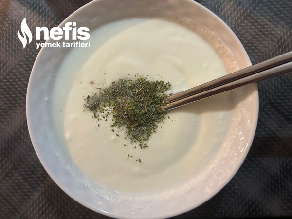 3. Yoğurdun içine kuru nane ve tuz koyup tekrar çırpıyoruz.