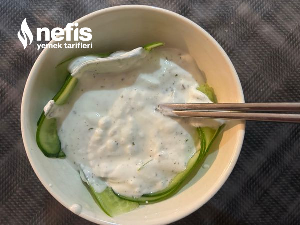 4. Yoğurdu salatalığımızın üzerine döküyoruz ve bu kadar.