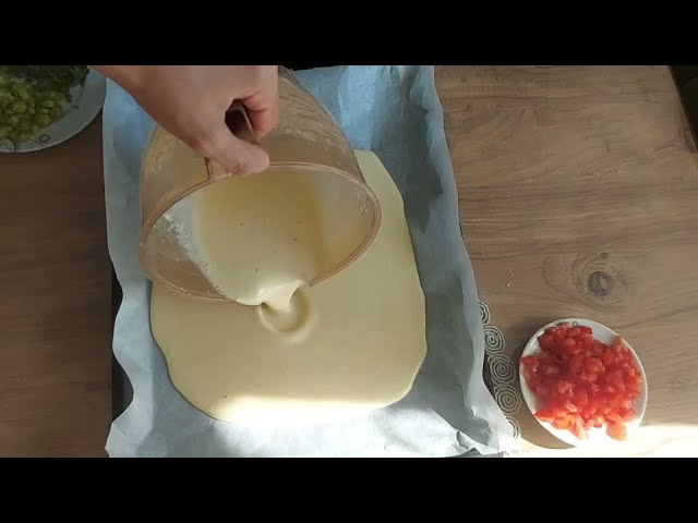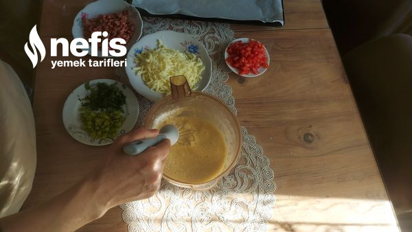 - Unu ek edip çırpmaya devam edelim, pürüzsüz olsun yağlı kağıt serili fırın tepsisine dökelim.