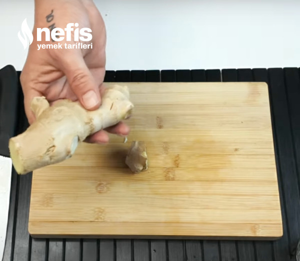 - Zencefilin kabuklarını soyup küçük kesimlere kesin. 20 gram taze zencefil güçlü bir doğal aroma verir.