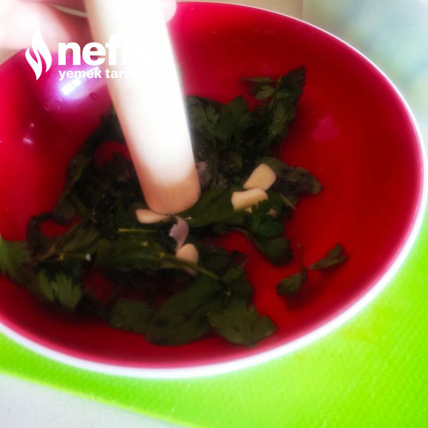 1. Erikler, dereotu ve nane güzelce yıkanır dövülecek bir kabın içine konur evvel nane, dereotu tuz ve sarımsak ek edilir tokmakla güzelce dövülür blender olmaz zira aroma düzgün çıkmaz.