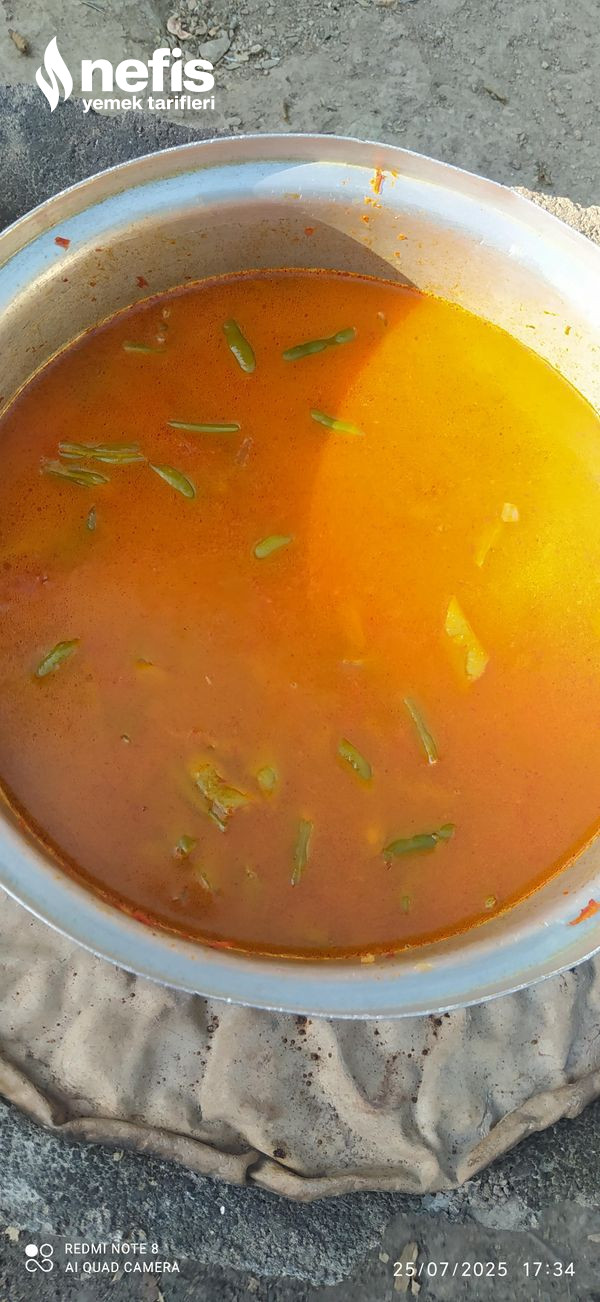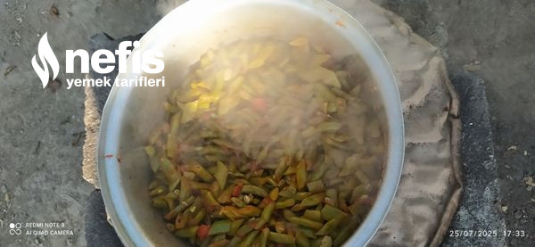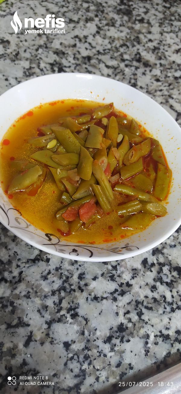 5. Fasulye düzgünce kavrulduktan sonra suyunu ekleyin (üzerini geçecek kadar) olsun ve yeşil fasulye servise hazırdır. 🙏🥰✨.