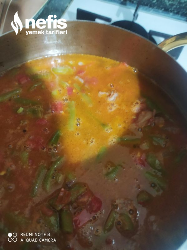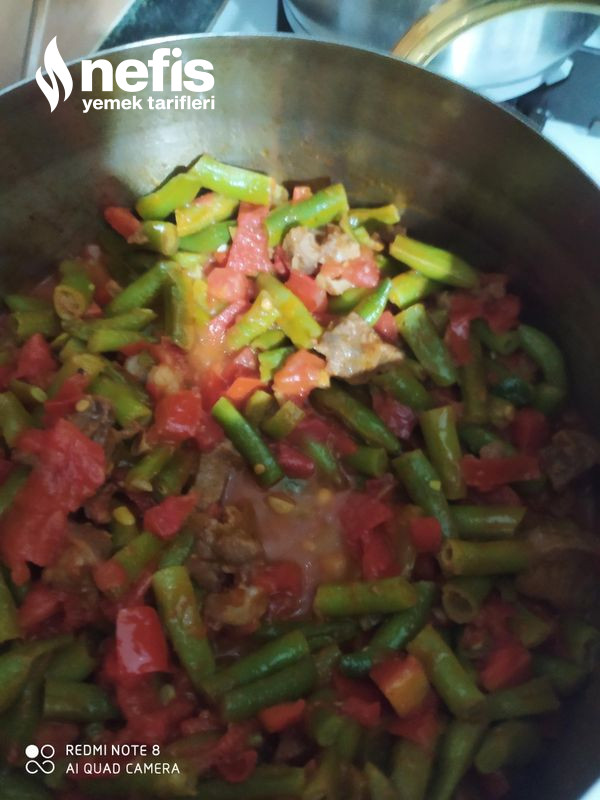 4. Daha sonra doğradığımız domatesleri ekleyelim. Domatesler sulanınca yeşil fasulyeyi ekleyelim.