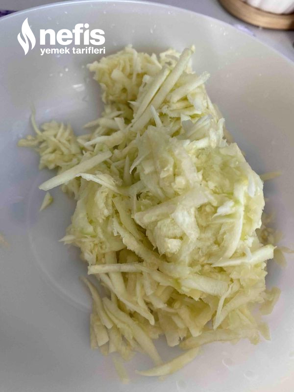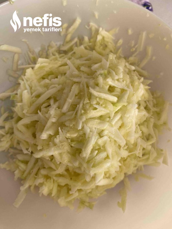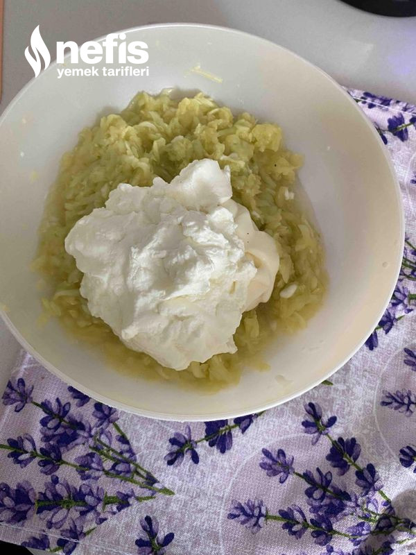 - Kabağın geriye kalan iç kısmını rendeleyelim ve elimizle güzelce suyunu sıkalım ki mezemiz sulu olmasın.