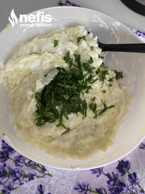 - Soğuyan rendelenmiş kabaklarımızı ve maydanoz yahut isterseniz dereotu da ekleyebiliriz bu kademede güzelce karıştırıp servis edeceğimiz tabağa alalım.