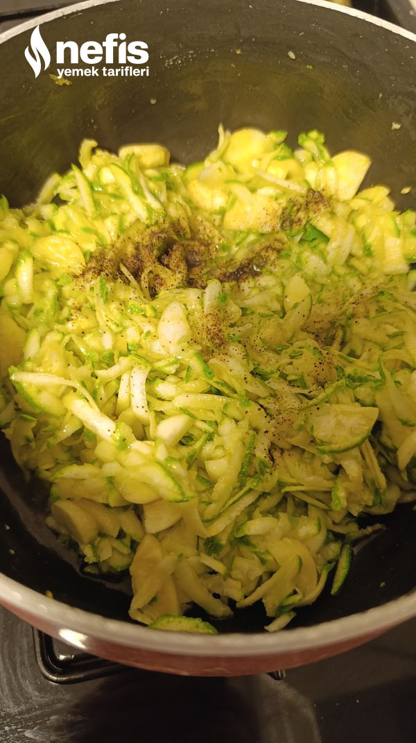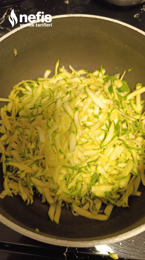 - Kabakları kabuklarını soyup rendeliyoruz. Sıvıyağda soteliyoruz.