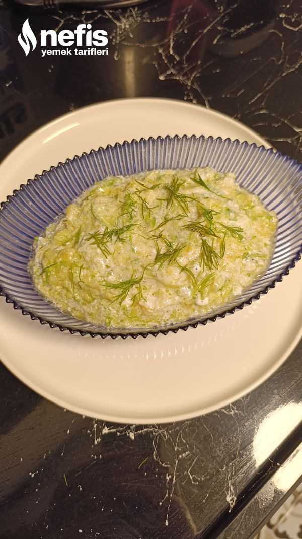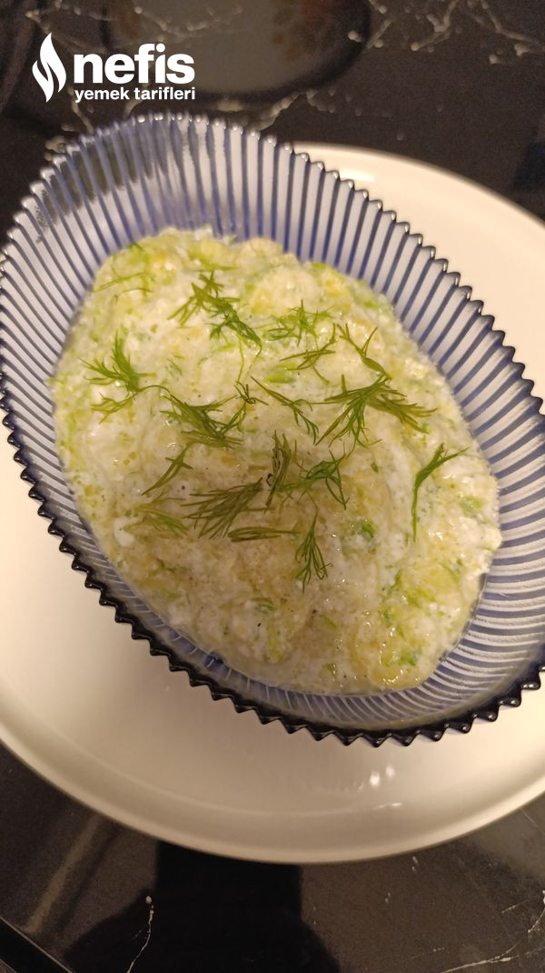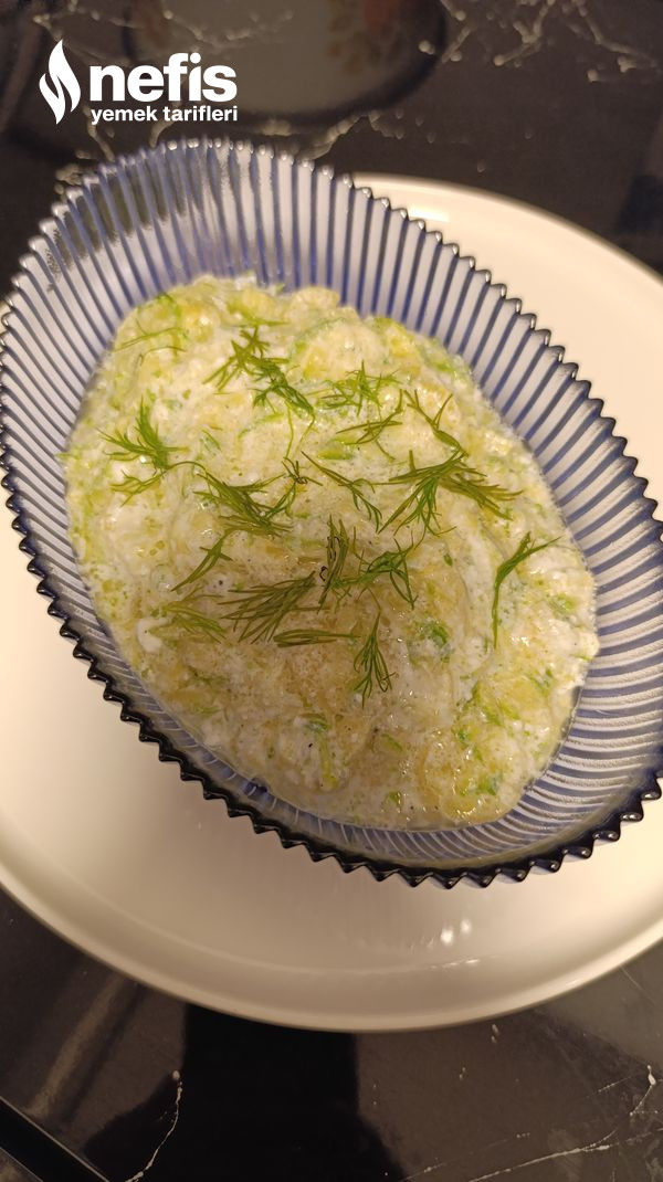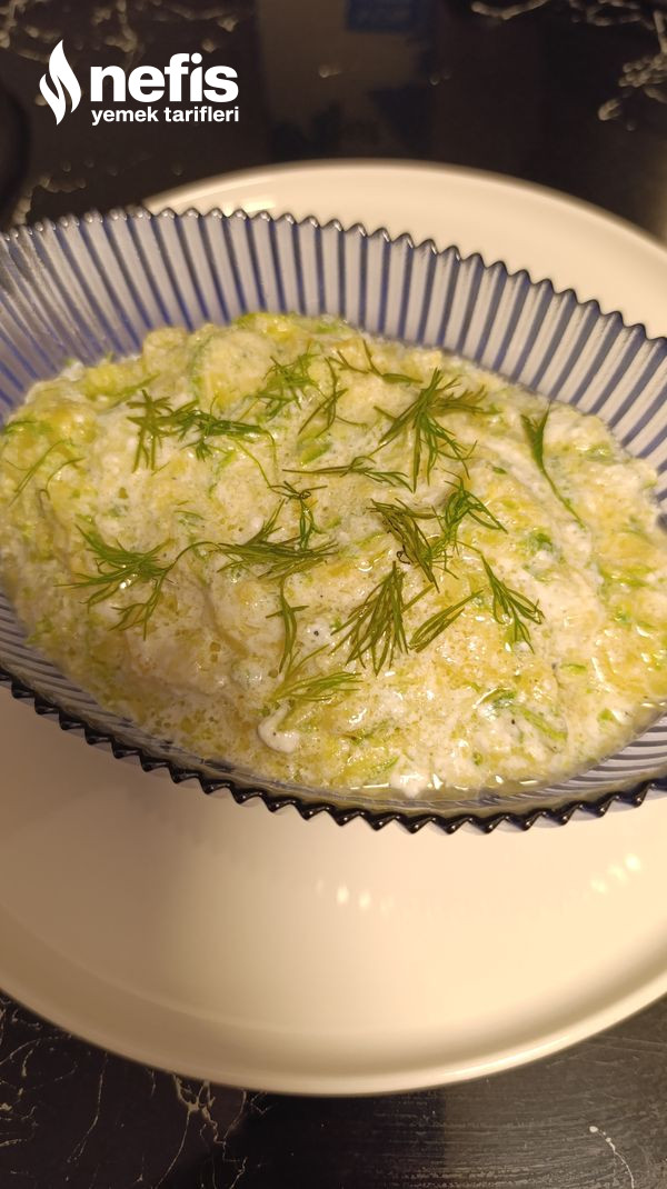 - Ezilmiş sarımsak tuz yoğurtları ince kıyılmış dereotunu ve soğuyan kabağımızı karıştırıp servis tabağına alıyoruz. Afiyetler olsun👌🤗.