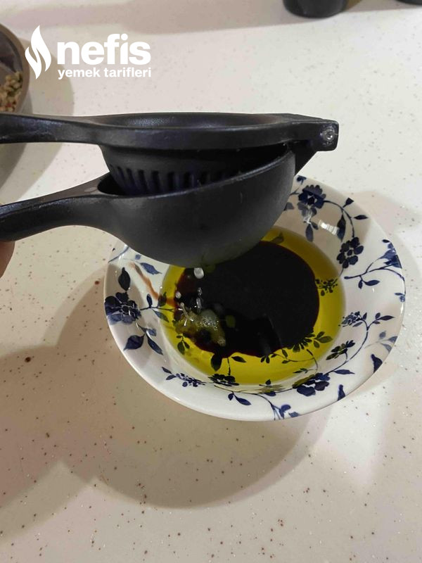4. Zeytinyağı, limon, nar ekşisi, tuz ve kimyonumuzu ekleyip salatamızı karıştıralım.