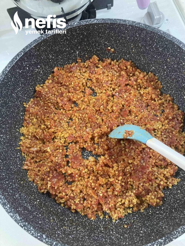 4. Bulgurlarıda ekleyip güzelce karıştırıyoruz.