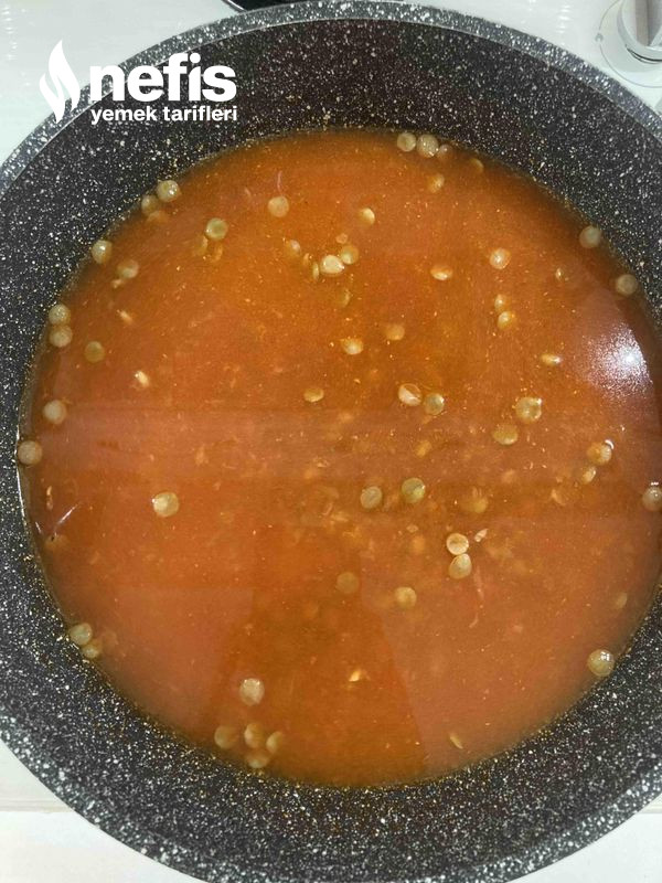 5. En son haşlanmış olan mercimekleri ilave edip suyunu koyuyoruz.