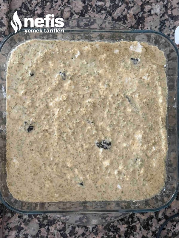 4. Yağlı kağıt serdiğimiz fırın kabına döküp evvelden ısıttığımız 180 derecelik fırında pişirelim. Soğuyunca dilimleyip servis edelim. Afiyet olsun.