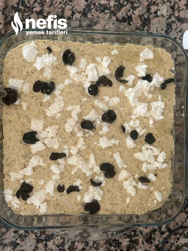 3. Son olarak peynir ve zeytini ek edip yavaşça karıştıralım. Ben üzerine kekik de ekliyorum.