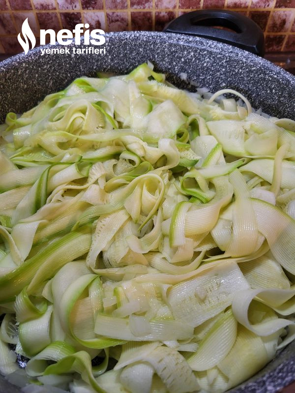 3. Kavrulan soğanların üstüne kabaklar eklenir.