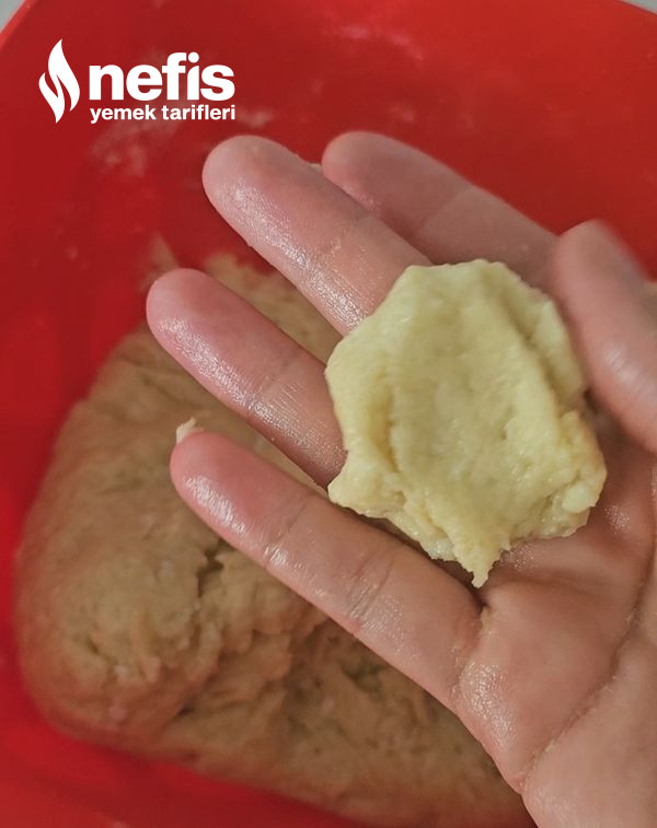 - Son bardak unu denetimli ekleyelim, yumuşak ele yapışmakla yapışmamak ortasında yağlı bir hamur olacak.