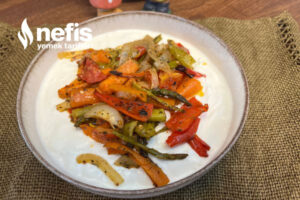 8. Fırından çıkarılan sebzeler ılıyınca yoğurtlu karışımın üzerine konulup servis yapılır.