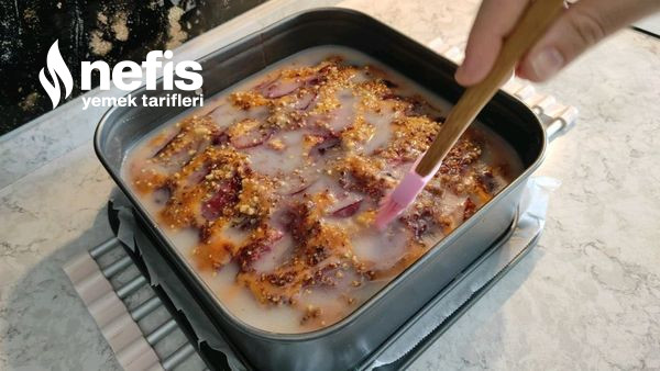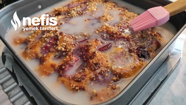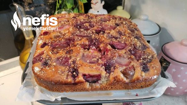 - Ben kelepçeli kalıp kullandım isterseniz borcamda da yapabilirsiniz. Hazırlamış olduğumuz sosu kalıba dökelim ve üzerine vişne, erik ve ceviz içi dökerek evvelce ısıtmış olduğumuz 170 derece fırında 40 dakika pişirelim. Kekimiz hazır olduktan sonra birinci sıcaklığı çıktıktan sonra 4 5 dakika bekleyelim ve daha evvelden ayırmış olduğunuz sosu üzerine dökelim. Sosunu çektikten sonra biraz soğumaya bırakalım ve kekimiz servise hazır.