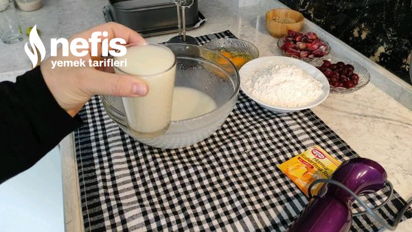 - Üzerine yumurta kabartma tozu ve unu ekleyerek kek kıvamında hoş bir hamur elde edelim.