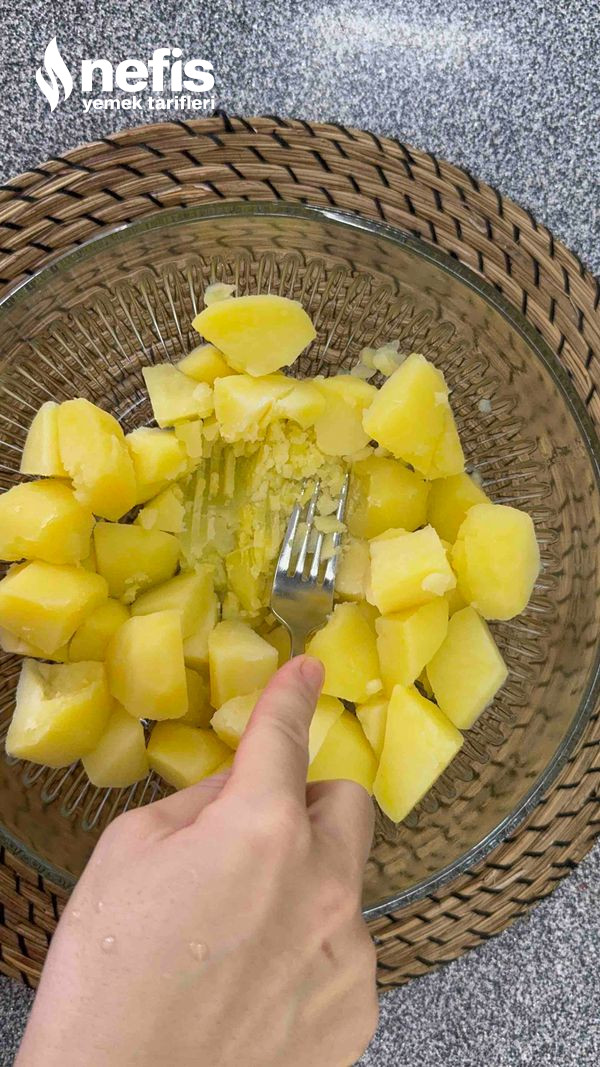 1. Patatesleri küp küp doğrayıp üzerini geçecek kadar su ekleyelim ve yumuşayana kadar haşlayalım.