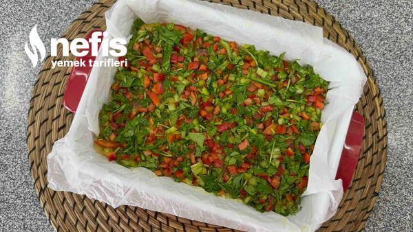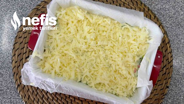 7. Yeşillikleri dökelim, sosu ekleyip, son olarak kaşar peyniri rendesi ek edelim.