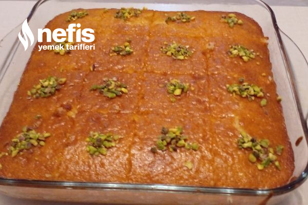 4. İlk sıcaklığı çıktıktan sonra ılık şerbeti üzerine dökelim, güzel çekmesi için şerbet ve tatlı ılık olmalıdır.