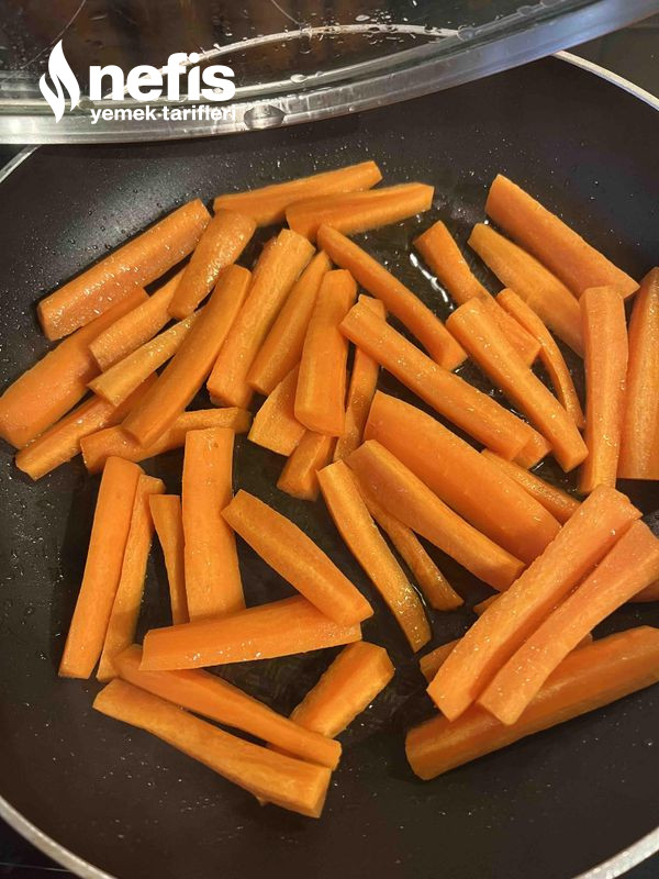 3. Havuçlar hafif yumuşayana kadar pişirelim sonra kapağını açıp biraz kızartalım.