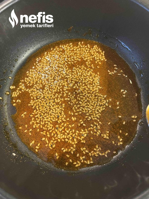 6. Son olarak zeytinyağı, susam ve kırmızı toz biberi hafif kavurup havuçlarınızın üzerine gezdirelim. Afiyet olsun.
