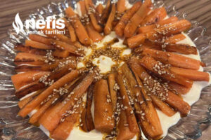 5. Kızartmış olduğumuz havuçları yoğurtlu sosumuzun üzerinde dizelim.