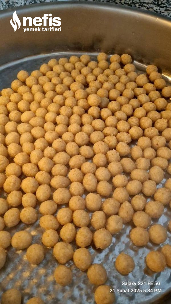 - Yoğrulan hamuru misket formunda yuvarlıyoruz.