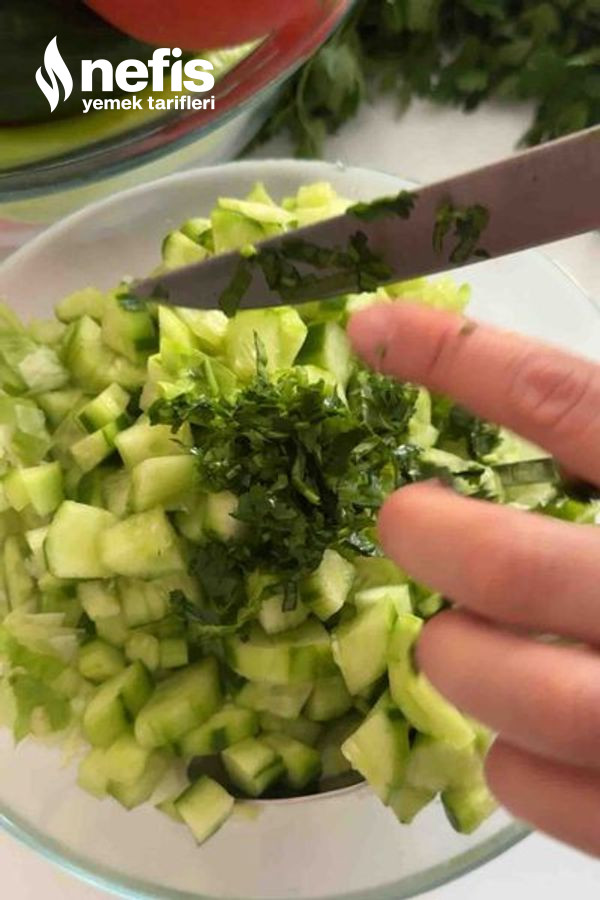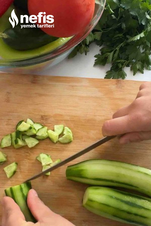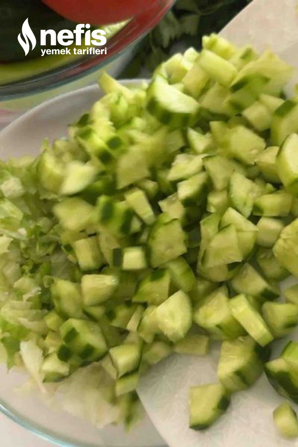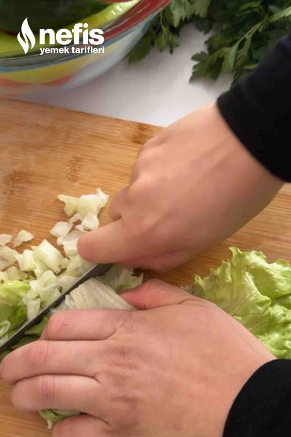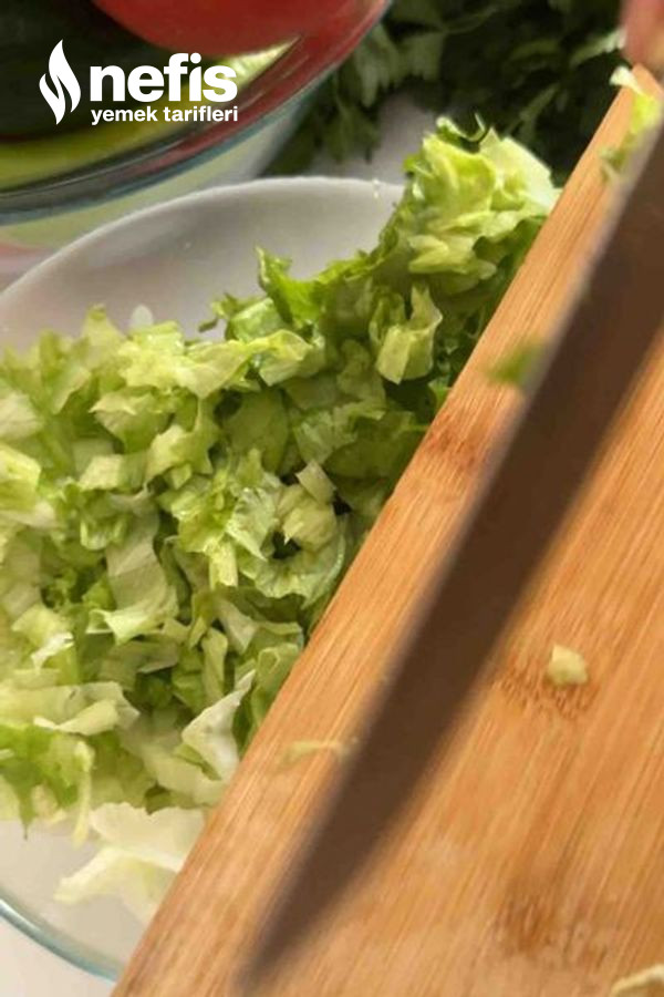- Marul ve salatalıkları doğra maydanozları ince ince doğrayıp kenara alalım.