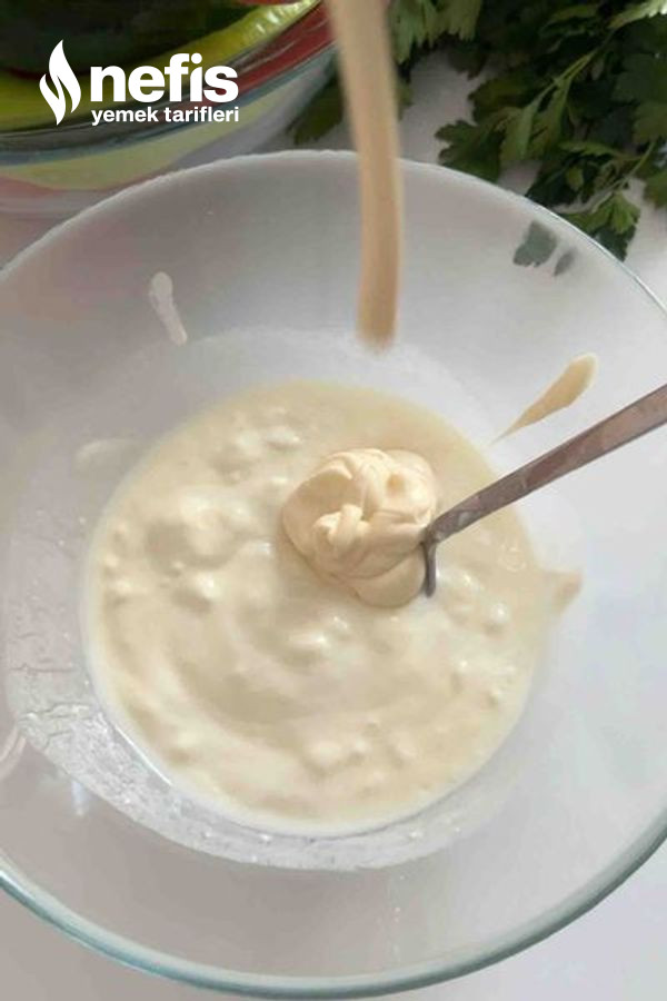 - Yoğurt ve mayonezi karıştır tuz ekle ve tüm materyalleri birleştirin.